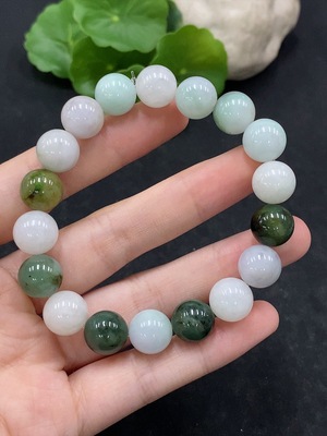 F38487669 Jadeite Bracelet Approx. 10.3mm Beads Total Weight 35.75g with Other Mineral Components