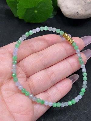 F35142266 Jadeite Bracelet Approx. 3.7mm Beads Total Weight Approx. 5.6g (Non-Gold Inlaid)