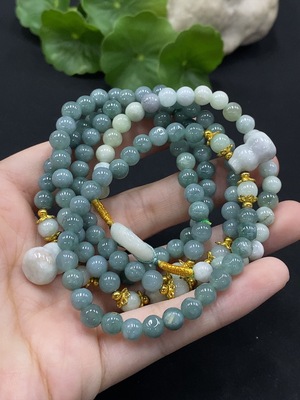 F34021433 Jadeite Bracelet, Non-A Grade Beads, Non-Gold, Total Weight Approx. 18g, Size About 7.6mm