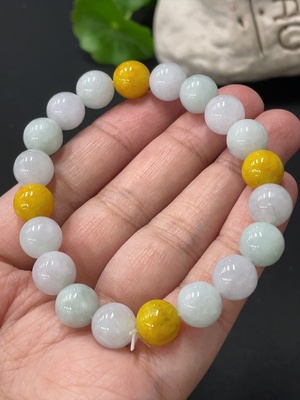 F35196463 Jadeite Bracelet Approx. 9.5mm Total Weight About 28.5g Yellow Beads Non-A