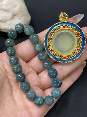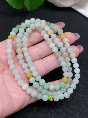 F34034357 Jadeite Bead Necklace + Bracelet Sell as a Lot Non-Gold Setting Yellow Bead Color Origin Undetermined