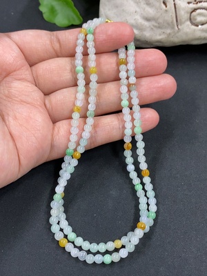 F32739784 Jadeite Bead Necklace Total Weight Approximately 6.6g Size About 2.7mm Including Other Minerals