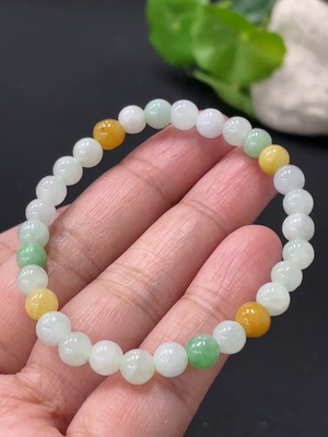 F36254790 Jadeite Beads Bracelet Approx. 6.1mm Yellow Beads Non-Grade A Total Weight Approx. 21.39g