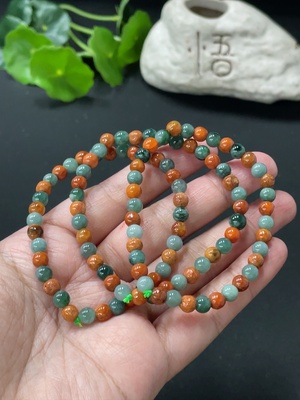 F29319639 Jadeite Beads Bracelet Approx.5.9mm Total Weight Approx.10.7g (Red Beads Non-A)
