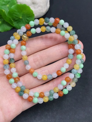 F33907505 Jadeite Bead Necklace Non-Gold Inlaid Total Weight Approx. 30.6g Size About 5.2mm Red Beads Yellow Beads Color Origin Undetermined