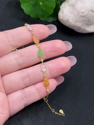 F34975859 Jadeite Inlaid Bracelet Total Weight Approx. 7.56g Red Beads Non-A Unmarked Surface Tested Gold Content Small Beads AU99% Marked Red Non-Gold Others Non-Gold Yellow Parts Color Origin Undetermined Matching Beads Non-A Gold Fragile