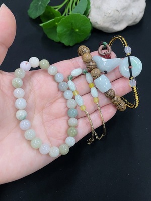 F35136929 Jadeite Bracelet/Ping An Kou Pendant Sell as a Lot with Non-A Grade Beads Non-Gold