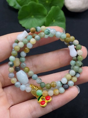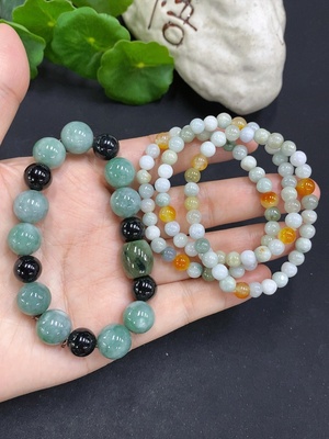 F35105190 Jadeite bracelet, total weight approx. 18.5g, 7.7mm beads, non-jadeite accessory beads, with impurities