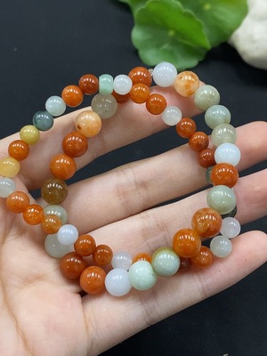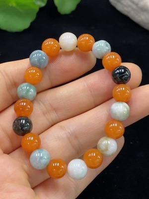 F34995953 Jadeite Bracelet Red and Yellow Beads Color Origin Undetermined