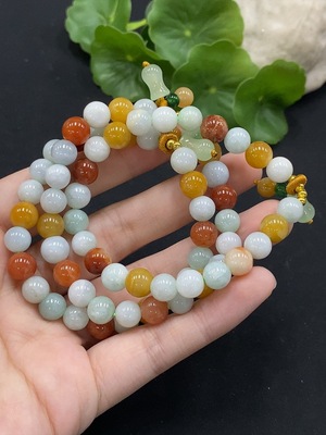 F35167127 Jadeite Bracelet Non-Grade A Beads Non-Gold Inlaid Total Weight Approx. 51.63g