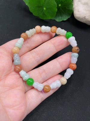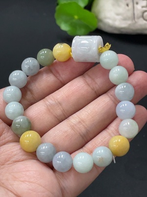F34996567 Jadeite Bracelet/Ping An Kou Pendant, the yellow part's color origin is undetermined