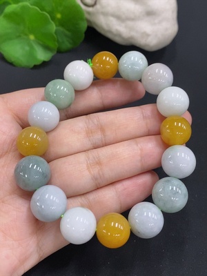 F34964074 Jadeite Bracelet Approx. 10.6mm Beads Total Weight Approx. 39.24g Yellow Beads Color Origin Undetermined