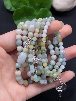 F24723735 Jadeite bead necklace, approximately 2.9mm, total weight about 3.3g (non-gold inlaid)