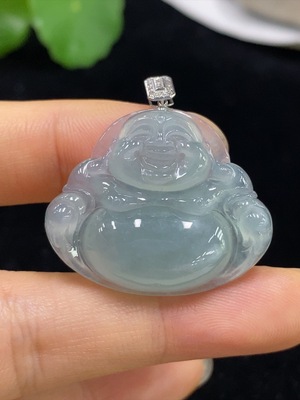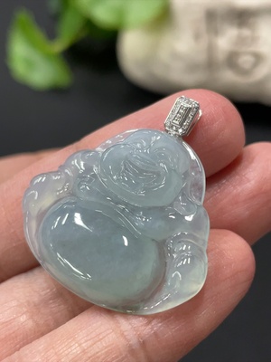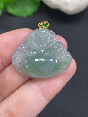 F22477886 Jadeite Buddha Pendant with 18K Gold Clasp, Total Weight 5.982g