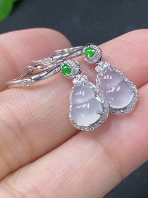F33829124 Jadeite Earrings with 18K Gold and Diamond Accents, Total Weight Approximately 2.5g