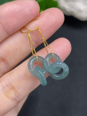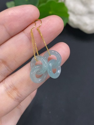 F35103999 Jadeite Inlaid Earrings 18k Gold Inlaid Including Ear Caps Total Weight Approximately 1.23g