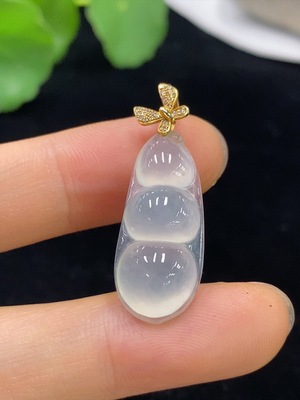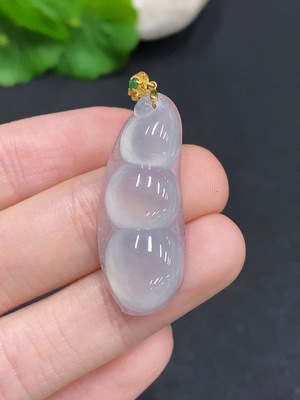 F34982010 Jadeite Lucky Bean Pendant with 18K Gold Setting, Total Weight Approx. 3.8g