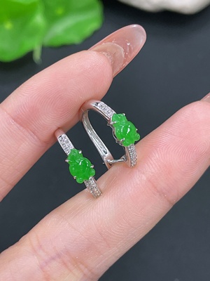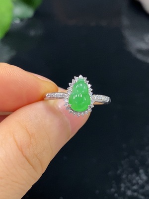 F34071445 Jadeite gourd inlay ring 18k gold inlay size 15 total weight about 2g with diamond
