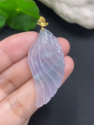 F35114198 Jadeite Leaf Pendant with 18k Gold and Diamond Accents, Total Weight Approximately 4.77g