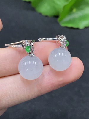 F35115274 Jadeite Bead Inlaid Earrings 18K Gold Total Weight Approx. 1.28g Including Ear Studs