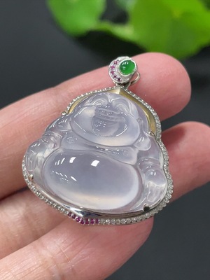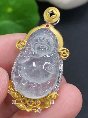 F31668954 Jadeite Buddha Pendant with 18K Gold and Diamond Accents, Total Weight Approx. 6g