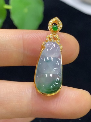 F34000994 Jadeite Auspicious Gourd Inlaid Pendant, 37% Gold Content, Total Weight Approximately 5g, Non-Diamond