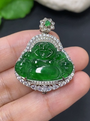 F37395255 Jadeite Buddha Pendant with 18K Gold and Diamond Accents, Total Weight Approximately 7.17g