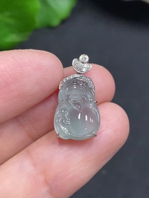 F37383513 Jadeite Maitreya Inlaid Pendant 18k Gold Total Weight Approx. 1.7g with Diamond Accents