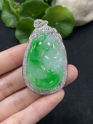 F33927317 Jadeite Pendant with 18K Gold Mount, Total Weight Approx. 2.55g, Accented with Diamonds