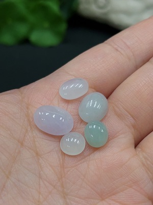 F12344815 Jadeite Inlaid Piece Cabochon One Hand 8 Pieces