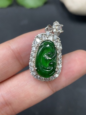 F33878103 Jadeite Auspicious Bean Inlaid Piece