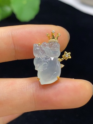 F35114189 Jadeite angel pendant set in 18k gold with diamond accents, total weight approximately 2.43 grams