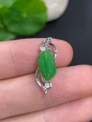 F16796229 Emerald Bean Pendant with 18K Gold Setting, Total Weight Approximately 7.8g
