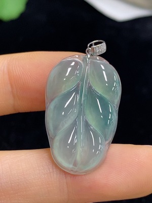F37397459 Jadeite Leaf Pendant with 18K Gold and Diamond Accents, Total Weight Approx. 3.25g