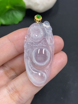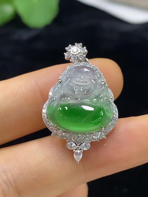 F37382749 Jadeite Maitreya Pendant with 18K Gold Clasp, Total Weight Approximately 6.3g, Set with Diamonds