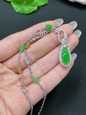F35188353 Jadeite Necklace 18k Gold with Diamond Accent Total Weight Approx. 10.4g Including Chain