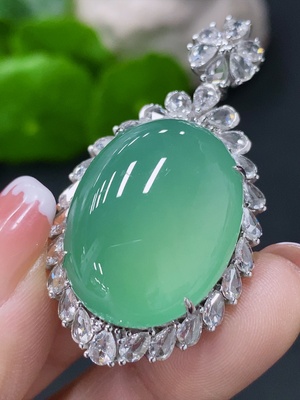 F34976959 Jadeite Bezel-set Cabochon Pendant with 18k Gold and Diamond Accents, Total Weight Approx. 0.9g