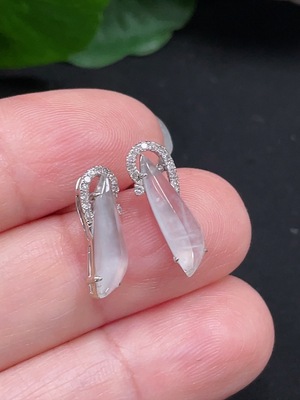 F36257016 Jadeite Earrings Set in 18K Gold with Diamond Accents, Total Weight Approximately 1.3g