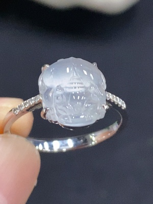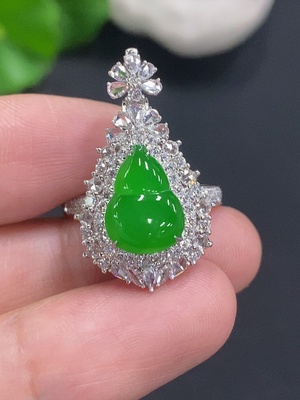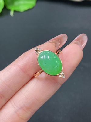 F36340693 Jadeite Ring 18k Gold Set with Diamonds Total Weight Approx. 3.4g Size 17