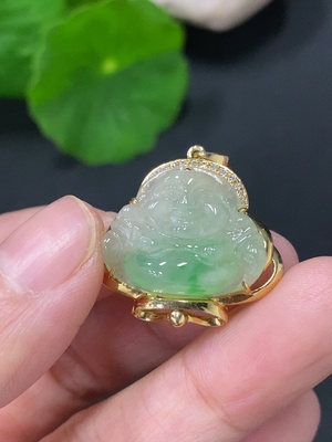 F31668954 Jadeite Buddha Pendant with 18K Gold and Diamond Accents, Total Weight Approx. 6g