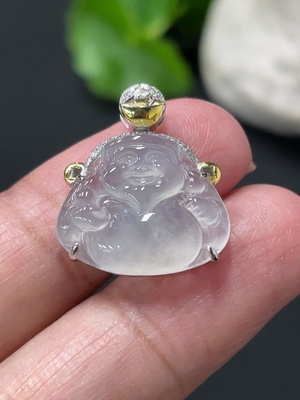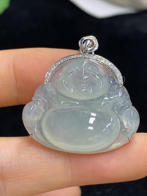 F35114196 Jadeite Maitreya Inlaid Pendant 18k with Diamond, Total Weight Approx. 4.6g