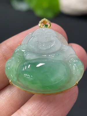 F36325120 Jadeite Buddha Pendant with 18K Gold Clasp, Total Weight Approximately 5.3g