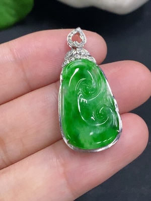 F32741015 Jadeite leaf pendant with 18K gold mounting, total weight approx. 4.8g (set with diamonds)