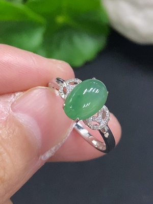 F36217380 Jadeite cabochon ring, non-gold setting, adjustable, total weight approx. 2.52g