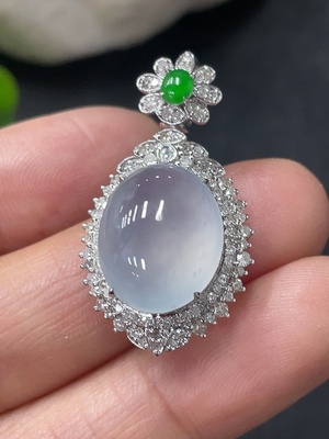 F36299487 Jadeite Cabochon Pendant in 18K Gold Total Weight Approx. 3.8g (With Diamond Accents)