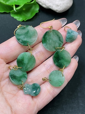 F31645871 Jadeite Blessing Bean Inlaid Pieces Wholesale Set