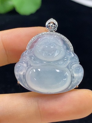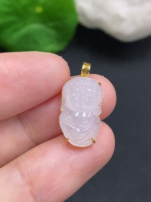 F28290054 Jadeite Buddha Pendant Set in 18K Gold with Diamonds, Total Weight Approx. 6.1g