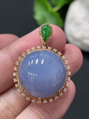 F36255145 Jadeite Cabochon Pendant, 18K Gold Setting with Diamond Accents, Total Weight Approx. 8.6g