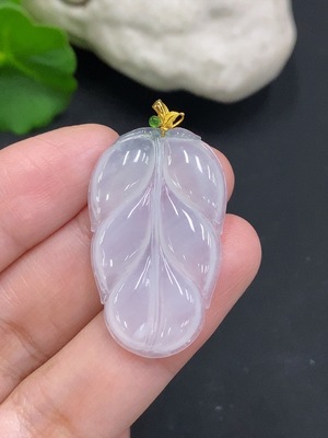 F35107056 Jadeite Leaf Pendant with 18k Gold Clasp, Total Weight Approximately 5g