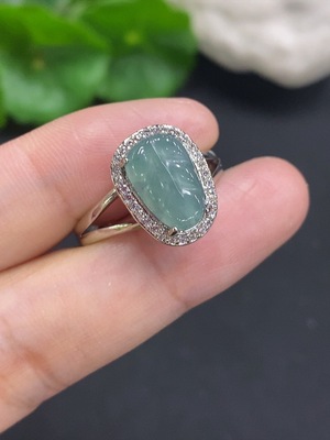 F35147022 Jadeite Leaf Inlaid Ring Non-Gold Inlaid Adjustable Size Total Weight Approx. 1.77g
